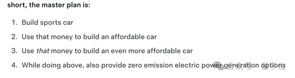 第三步:再用賺到的錢造一款大眾化且性價比較高的電動車(Model 3/Y),目標是實現大規模生產,真正將電動車推向主流市場。
