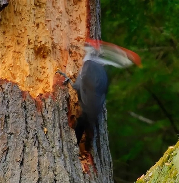 對于它啄樹的速度沒有概念,可以看一下下面這張照片,快到模糊。