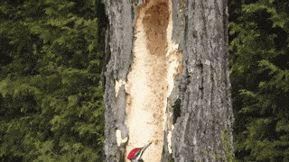 總之,有了這么一個“鐵頭”,加上北美黑啄木鳥堅硬的鳥嘴,被它盯上的樹木(本身有問題的樹木)會比較慘,更何況是玻璃呢,有時候電線桿和房子,它也不放過。